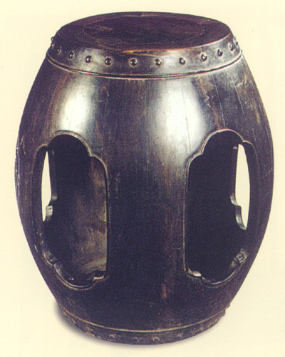 两头小、中腹鼓、形状似鼓,所以称为“鼓墩”。腹部四孔开海棠式,孔边盘阳线,整体圆浑饱满,颇具明式风味。
