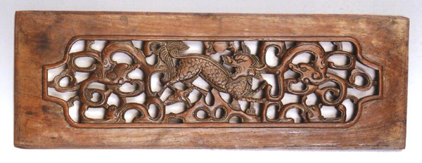 明,黄花梨麒麟螭虎纹透雕