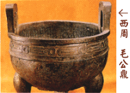 毛公鼎是西周青铜器中赫赫有名的重器之一,作于西周晚期的宣王时期。内壁铸有多达498字的长篇铭文。其内容是周王为中兴周室,革除积弊,策命重臣毛公,要他忠心辅佐周王,以免遭丧国之祸,并赐给他大量物品,毛公为感谢周王,特铸鼎记其事。其书法是成熟的西周金文风格,结构匀称准确,线条遒劲稳健,布局妥贴,充满了理性色彩,显示出金文已发展到极其成熟的境地。