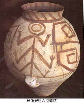 另外如临潼姜寨彩陶中的蛙和鱼纹,造型质扑,用笔稚拙,别有一种艺术魅力。可以说,在新石器时代的彩陶画上,已经体现出中国古代绘画传统的某些基本特色,如线描的表现方法和对笔墨效果的体会和运用等。