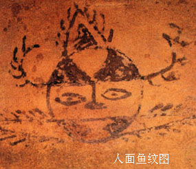 在仰韶文化半坡类型的彩陶盆上,还有描绘人面与鱼相连或与鱼网相伴的图像,这类人面皆呈圆形,头上似戴着尖顶高帽,眼鼻形象明确,双眼眯成一线,耳旁或嘴旁有双鱼。学术界一般认为这类带有神秘色彩的人面纹定与某种原始信仰有关,但具体解释不同,有崇拜鱼图腾、祈求捕鱼丰收、祈求生殖繁盛等多种说法。