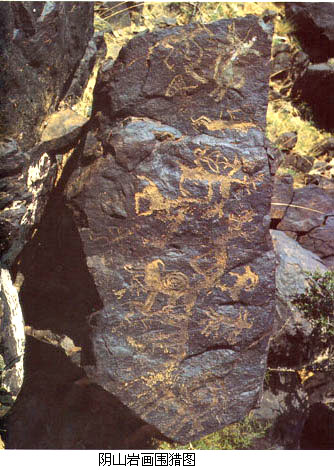 【岩画】 特指一种刻或画在岩石表面的图画。中国境内共有15个省区的70多个县发现岩画遗址。目前在中国境内大体上可以确认为新石器时代的岩画有内蒙古自治区中南部的阴山岩画和江苏连云港的将军岩岩画,也有学者认为在阴山岩画中最早期的作品应属于旧石器晚期。另外,有一些学者分别认为内蒙古乌兰察布和桌子山岩画、新疆库鲁克山兴地岩画、云南沧源崖画、福建华安仙字坛崖画等也有可能源自新石器时代。