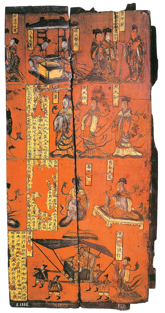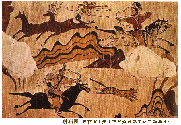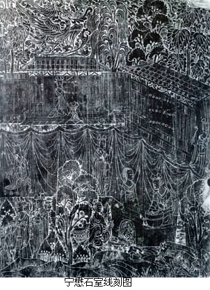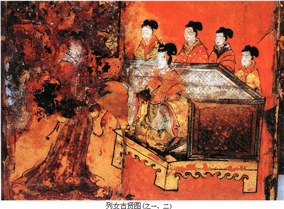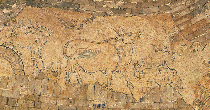 山西太原北齐娄睿墓中发现多幅壁画,其人物、鞍马形象、表现手法与《北齐校书图》相似,而且艺术水平极高,有学者推测可能出自杨子华之手。该壁画与《北齐校书图》相互印证,可见北齐绘画的高度水平。 曹仲达本中亚曹国(今撒马尔罕一带)人,后入北齐,能画梵像,影响至于盛唐,后世称“曹家样”,又被称为“曹衣出水”,即人物衣服紧窄,有如刚从水中出来一样。这种风格特征主要是受印度笈多王朝马土腊式佛像艺术影响所致。又用“其体稠叠”来形容曹画人物衣褶重叠垂下,又用“衣服紧窄”形容其衣服质料轻薄,紧贴躯体。后世把曹仲达的“曹衣出水”与唐代吴道子的“吴带当风”作为两种不同的风格相提并论,可见其深远影响。曹画已无存,但从受其影响的北齐稠叠薄衣佛像仍可窥其一斑。 画像砖、石刻线画与木板漆画 魏晋时期,流行于汉代的画像砖,在北方地区已由衰弱而至于绝迹,在江南地区则大为盛行。到了东晋,在单块砖为一完整画面基础之上,又发展出由多砖拼镶的大型砖画。这一样式在东晋末年和刘宋初年之间大放异彩,成为六朝艺术的精华。 南京西善桥墓出土以“竹林七贤”和荣启期像为题材的巨幅拼镶砖画。它对称嵌在墓室壁上,每幅各有四个人物,人物旁边则有榜书,两像之间用树木分隔。砖画线条劲健流畅,并且力求刻画出人物的内在精神气质,嵇康的清高自傲、阮籍的长啸当歌、王戎的悠然适意,刘伶的持杯微醉,都刻划得惟妙惟肖,一改汉代画像以服饰和动作的夸张描绘来表现人物的作风。魏晋时期著名画家的真迹无一传世,除顾恺之有一些文字记载和几件摹本外,其他画家连摹本也无流传下来。此墓砖画的出土,为研究魏晋时期绘画提供了实物材料。 “七贤”是六朝绘画中最流行的题材之一,此类题材的拼镶砖画在南京、丹阳地区南朝墓中多有发现。南朝“七贤”砖画对于北朝墓室壁画也有不少影响,如山东地区北齐墓室壁画中出现的屏风画中有树下人物褒衣坦胸、席地而坐的图像,明显是南朝“七贤”图像的模仿。 在北朝墓葬中,屡有石刻线画出土,多以孝子故事、墓主人生前生活、仙人、神兽、乐伎仪仗、商旅出行以及佛教为题材,不少作品反映出相当成熟的人物画技巧和高度的艺术水平。河南洛阳北邙山所出的北魏晚期“宁懋石室”是一间仿木构三开间的石祠,石室内外饰满石刻线画,门两侧是守门武将,门内左右是出行、庖厨,后壁是一组墓主夫妇像,石室外壁则是孝子故事图。主要以阴刻线条为表现手法,人物形象生动自然,艺术技巧相当成熟。此外,洛阳北魏皇室墓葬地出土的“孝子石棺”和山东益都北齐石室墓石壁上的线刻图像也是著名的石刻线画作品。 木板漆画也是目前发现的北朝绘画的重要种类。山西大同北魏中期司马金龙墓出土木板漆画多块,内容为古贤、烈女、孝子以及其他有劝诫寓意的道德故事。人物以墨线勾描,某些部分涂色。线描工细流畅,与顾恺之“春蚕吐丝”的画风十分接近,其他如构图、形象、形象、衣饰也与《女史箴图》、《列女仁智图》多有相似,反映了南北朝艺术交流、影响的史实。宁夏固原北魏墓中曾出土一件描金彩绘漆棺。漆棺制作年代在北魏太和年间,即北魏推行汉化政策期间。在漆棺画上,可以见出草原文化与中原文化并而未合、汇而未融的时代气息。画中人物皆着鲜卑装,画面笼罩着浓厚的鲜卑色彩,但中原文化的影响亦有所体现。如漆棺盖上的主题纹饰是常见于汉代绘画中的东王公和西王母。棺画中的孝子像也一律鲜卑装,这种形象的孝子像,在中国艺术史上仅此一例。 漆棺上画有孝子,并不意味着墓主已服膺以儒学为代表的中原文化。汉末《孝经》已被附会为能消灾辟邪,南北朝时,除用《孝经》外,还兼用道经和佛经随葬,表明死者三教兼习,以保佑冥途平安。因此有学者认为此墓的孝子像可能只是迎合时尚的装点殡葬之物。固原漆画从一个侧面反映了北魏贵族中反对汉化的势力的思想倾向。孝文迁洛后,不少鲜卑贵族雅爱本族风尚,对革变新风,多有不满。从中可见孝文改革所遇阻力何其顽强。 【墓室壁画】 现存魏晋时期墓室壁画主要分布在边远地区,如东北的辽宁、吉林,西北的新疆、甘肃,西南的云南等地。这些墓室壁画在题材内容上既有承袭东汉时期以表现墓主生前生活为主的特点,同时又更富于日常生活的生动描绘,有些也显示出明显的地方特色;在艺术风格上,主要延续东汉晚期墓室壁画生动豪放、稚拙有趣的画风。 辽宁辽阳地区至今已发现有多处曹魏西晋时期的墓室壁画。这些墓室均为石室墓,直接于石壁上绘有表现墓主生前生活的图画,如宴饮、家居、庖厨、车马出行、门卒等,亦有云气天象、仙禽等。形象生动。技法多样,以勾线涂彩为主,也有单纯勾线或大笔涂彩,总体风格是简朴生动,奔放粗犷。 此外,辽阳地区还发现多处十六国时期的墓室壁画。其中于袁台子发现的十六国时期壁画墓室壁画以题材多样、内容丰富、艺术水平较高而闻名。如画中的妇女高髻朱笄,发饰华丽;四灵气势劲健,技法纯熟;残存的狩猎画面上,骑士弯弓欲射,群兽奔突。 辽宁地区的墓室壁画对于后来的高句丽墓室壁画有很大影响。 高句丽是生活于中国东北边境浑江和鸭绿江流域的一个古老民族,公元前1世纪建立高句丽国,至3~4世纪时国力强盛,版图南达朝鲜半