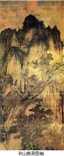 概述 【历史文化】 中国历史上将唐亡后在中原立国的后梁(907~923年)、后唐(923~936年)、后晋(936~947年)、后汉(947~950年)、后周(951~960年)这五个朝代称作五代。而在南方,则先后有十个地方割据政权并存。这一分裂割据局面,实则是晚唐藩镇割据的延续,而后周则是北宋的前身。 中原地区,因为唐末的战乱而元气大伤。据载,黄巢之乱时,“数十州大饥,倚死者墙堑,贼(指黄巢所部)俘以食,日数千人,以巨碓糜其骨皮,并啖之。”(《资治通鉴》)另外一支暴民队伍秦宗权部则是“既乏食,啖人为储,军士四出,则盐尸而从。”(《旧唐书》)其屠戮之残毒,实在令人发指。经过十几年的大骚乱,中原地区“人烟断绝,荆榛蔽野”。紧接而来的五代虽名义上承唐启宋,号为正朔所在,其实前后五代,不过54年而已,却有八姓、十三君。这正说明当时的中原地区,已到了最为混乱的时代。而在南方十国中的西蜀和南唐,却因社会安定,经济发展而成为此时的文化中心。安史之乱后,随着中原的屡次战乱,朝廷画师和各地名画家,避难南下,推动了西蜀和南唐两地绘画艺术的发展。西蜀(前后蜀)与江南(南唐)是唐末至宋初的两个绘画中心,聚集了许多画家。前后蜀四主皆喜爱绘画。后主孟昶为提倡绘画,于明德二年(935年)创设“翰林图画院”,选拔绘画人材入院,授予待诏、祗侯等官职。 朝代的更替并不代表绘画史中的分期,这一点在五代绘画表现尤为明显。五代绘画既是晚唐的延续,而它的风貌也一直延续到北宋初年。五代十国绘画,上承晚唐余绪,下开宋代新风,主要表现为:(一)宗教画仍是此期的主要画种,各地寺庙壁画创作仍在继续,画风多沿袭吴道子。(二)山水画发生了关键性变化,出现了以荆浩、关仝为代表的北方山水体格和以董源、巨然为代表的江南山水体格。用于表现山石质感与结构的皴法得到发展,水墨山水至此发展成熟,这在中国山水画史上具有里程碑式的意义。(三)花鸟画形成了两大风格,分别表达了“富贵”与“野逸”的不同趣味。 山水画 五代十国时期是中国山水画发展变化最为剧烈的时期,然而由于资料的欠缺,对于这种剧烈变化的许多细节,至今尚无法弄清。结合考古发现、文献记载和传世的作品,大致可以认为此期山水画创作成就,有以下三点: (一)是找到了表现山石的皴法,促进了中国山水画中水墨山水的勃兴。皴法的不同,遂形成中国山水画的二大流派。斧劈皴一派至荆浩、关仝日趋成熟,披麻皴一派至董源、巨然日见完善。 斧劈皴较适于表现北方裸石质山崖,其变体有大斧劈、小斧劈、豆瓣、折带等。披麻皴适于表现江南丘陵土质山坡,其变体有卷云、荷叶、解索、牛毛等。 (二)初步完成写实性山水图像。五代画家经过长期的积累,创造了一种能在平面空间上再现立体世界的绘画方式,成功地掌握了塑造山石形体和表现画面空间深度与生动感的技巧。 (三)出现了一批标程百代的山水画家,他们所创造的山水体格,成为不朽的典范和后世的楷模。 荆浩,生卒年不详。字浩然,河内(今河南沁阳)人。五代时避乱于太行山之洪谷,自号洪谷子。曾言“吴道子画山水有笔而无墨,项容有墨而无笔,吾当采二子之所长,成一家之体”(郭若虚《图画见闻志》)。他所谓的“笔”指的或是勾皴,而“墨”所指的是阴阳向背的墨色变化,这可视为五代山水画家对运用水墨勾皴表现山石质感的自觉。 《匡庐图轴》传为其作品,此图水墨绢本,采用全景式构图方式,石法方硬,皴法兼备,气势雄伟;虽反映了荆浩的某些面貌,但很难确定是否真迹。 荆浩著有《笔法记》,此书首创山水画“六要”说:气、韵、思、景、笔、墨。由于谢赫的“六法”说已不适应水墨山水画日益拓展的需要,故增“六法”所缺之“墨”,又将“应物象形”与“随类赋彩”概括为“景”,又将“经营位置”提练为“思”,又去不合山水画以写生为主的“传移模写”。 此外又提出“神妙奇巧”、“笔有四势”(筋、肉、骨、气)、“有形之病”和“无形之病”、“物象之源”(对树木、山水的审美体验)等理论范畴,并评价了唐代山水画家李思训、王维、项容等人的艺术造诣,深刻而广泛地阐明了他的山水画艺术思想,亦为品评山水画制定了要则,在中国画学著作中具重要地位。 荆浩的山水画艺术思想与兴起于晚唐的新儒家追究宇宙万物之“理”与“性”的理论很相似,其要旨乃是要把握宇宙并参悟它深沉博大与复杂多变的奥秘,而非仅仅限于模仿自然。这一观照自然的过程包括对自然的观察、冥想和参悟。正是这种自然观决定了中国写实性山水图像没有采用焦点透视这种科学性空间表现的方法(西方线形透视法在18世纪才被中国画家采用),而是放观于散点透视,通过山石的纵深层次,造成真实可感的空气效果。 荆浩在绘画实践和绘画理论两方面都予后世以深远影响。中国古代绘画,自五代以后以山水居首,而水墨山水又居山水画的主流地位,这与荆浩的影响密不可分。 关仝,生卒年不详。长安(西安)人。学荆浩而有出蓝之誉,笔法简劲而气势雄壮,后人合称他们为“荆、关”。在传为关仝的三件作品中,《秋山晚翠图轴》可能最体现关仝的本来画风。画上树石形态映证了画史上对他画风的记载“石体坚凝,杂木丰茂”(郭若虚《图画见闻志》),但是否真迹难以确定。《关山行旅图轴》画寒山枯木,山店行旅,勾笔粗壮雄肆,画