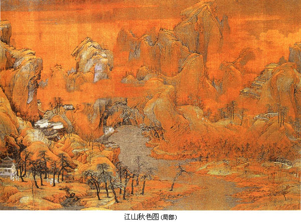 李唐的亲授弟子萧照也是南宋初期一位重要的山水画家。他沿袭李唐苍劲简朴画风而用墨较多。 青绿山水传统在南宋初期又出现一对皇室出身的传人赵伯驹(1123~1182年,字千里)和赵伯骕(生卒年不详,字希远)兄弟。传为赵伯驹所作的《江山秋色图》和赵伯骕所作的《万松宫阙图》代表了青绿山水在南宋的两种发展方向:前者虽采青绿赋色方法,但屋宇、楼阁、舟桥、树木的刻划接近北宋自然主义山水的体貌;后者严格运用青绿赋色,并保留唐代山水象征性的图像方法,苍松宫阙、仙鹤祥云、长河落日,传达出典雅富丽的宫廷气息。