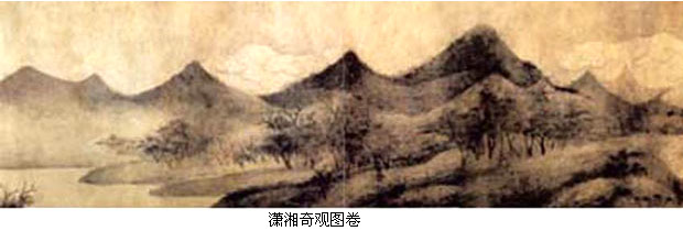 赵令穰,生卒年不详。字大年,宋宗室。善画坡坂汀渚。传世作品《湖庄清夏图卷》,笔法柔润,设色清雅。 米芾(1051~1107年),字元章,号鹿门居士、襄阳漫士、海岳外史,祖籍太原,后迁湖北襄阳,晚年定居润州(今江苏镇江)。徽宗时召为书画学博士,擢礼部员外郎,人称“米南宫”。为人颠狂不羁,冠服效唐人,好洁、好石成癖,世有“米颠”之称。其人天姿高迈,善书画,且精于古书画鉴赏,好贬抑古今人书画,立论多过于偏激。画水墨山水,“信笔为之,多以烟云掩映树木,不取工细”(邓椿《画继》)。他独创一种以点染代皴、删繁就简的笔墨技法,使笔墨从造型功能中解放出来而成为一种有写意性趣味的独立因素。米芾无真迹传世,其书法作品《珊瑚帖》,书后画珊瑚一枝,笔法生动,是其唯一画迹。目前仅可从其子米友仁作品中窥其一斑。 米友仁(1086~1165年),字元晖,世称“小米”。其画山水烟云流润,草草为之,自称为“墨戏”。传世作品有《潇湘奇观图》、《云山墨戏图》、《潇湘白云图》等,在画法上,米家山水不像传统水墨以勾皴表现山石,而以笔饱蘸水墨,用大小圆形横点簇山石,利用墨与水的渗透形成模糊效果,以表现烟云迷漫、雨雾空濛的江南山水。画史上称此技法为“米点皴”或“落茄皴”,它于斧劈、披麻皴之外另辟蹊径,独树一帜,对后世影响极大。但在宋代,这种不拘常法的写意画并不受普遍认可,甚至遭到“解作无根树,能描濛鸿云”的众嘲。