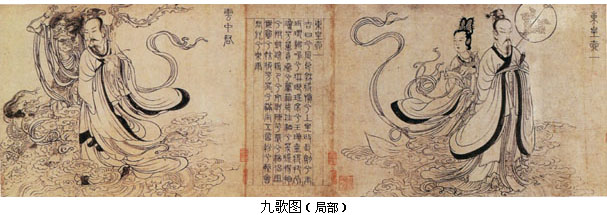 张渥,字叔厚,号贞期生,杭州人,以白描人物著称,师法李公麟,用笔飘逸流畅,形象生动,被誉为“李龙眠后一人而已”,传世作品有《九歌图》。