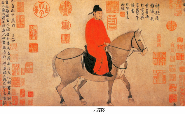 赵孟頫在人物鞍马画上的成就也很突出,有《秋郊饮马图》、《人骑图》、《红衣罗汉图》、《洗马图》等作品传世。此外,在古木竹石亦有相当成就,有《窠木竹石图》、《秀石疏林图》等传世作品。
