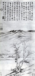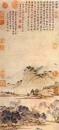 文征明的书画造诣极为全面,其诗、文、画无一不精。人称是“四绝”的全才。 他虽学继沈周,但仍具有自己的风格。他一专多能,能青绿,亦能水墨,能工笔,亦能写意。山水、人物、花卉、兰竹等无一不工。