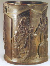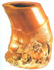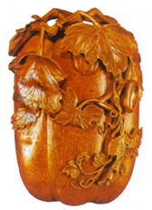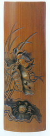 竹雕器按其功能大致可分为实用器和陈设摆件两大类,实用器中以文房用品最为多见,摆件则主要是以人物、动物、植物等为题材的圆雕作品。