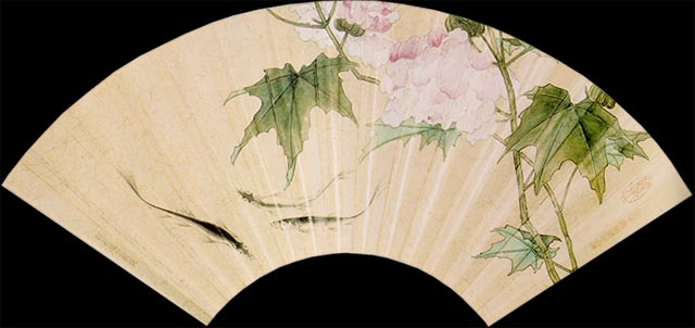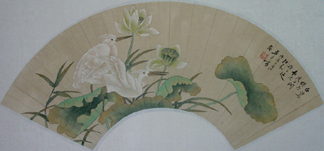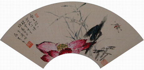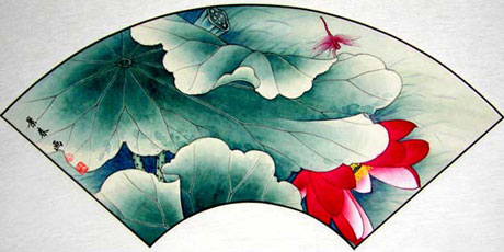 荷花扇面