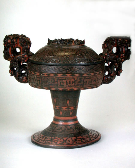 彩绘龙凤纹盖豆 通高24.3,长20.8,宽18cm 湖北省博物馆藏品 战国 1978年随州曾侯乙墓出土