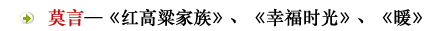 莫言 莫言原名管谟业, 1956年3月5日出生于山东高密一农民家庭。农村社会的经济贫困和中农成分的政治歧视给他的少年生活留下了惨痛记忆。12岁时因“文革”爆发辍学回家放牛割草,闲暇时读《三国演义》、《水浒传》。1976年8月参军,1979年秋调至解放军总参谋部,历任保密员、政治教员、宣传干事。1981年开始小说创作,发表处女作《春夜雨霏霏》。1984年秋入解放军艺术学院文学系学习。1985年发表短篇小说《透明的红萝卜》,引起文坛注意。1986年发表中篇小说《红高粱》,被读者推选为《人民文学》1986年“我最喜爱的作品”第一名。同年毕业到解放军总政治部工作,开始有报告文学作品问世。1989年秋入鲁迅文学院研究生班学习。2004年获“华语文学传媒大奖”,评委们称莫言是“国内外公认的中国当代文学代表人物之一”。