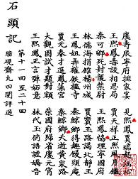 至于庚辰本和己卯本上“协理宁国府”句,竖心旁的“协”字,可能追溯要更早。现在在唐褚遂良字碑和宋代苏轼字帖里,都有出现。后来,在元明清时代古籍抄本或刊本也都不少的沿袭使用。竖心旁的“协”字,就连同多一点的“卿”字,在红楼梦其他版本上,也是遍地开花般的存在。如下图十一至图十三所示,程甲本第13回、仓石本第13回、仓石本第13回内标目,均出现多一点的“卿”字和竖心旁“忄”的“协”字。