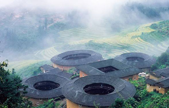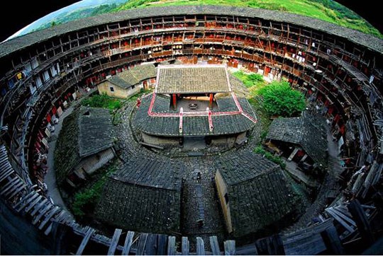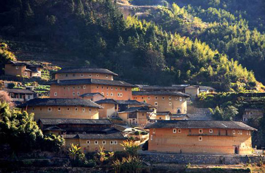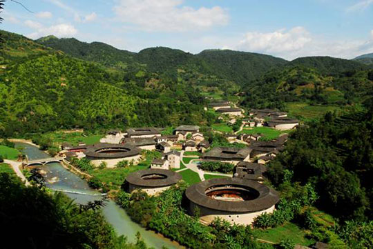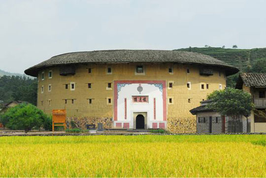 在闽南山区腹地的南靖县,一座座夯土版筑的土楼点缀在小溪旁、田野间,绿树掩映的山脚下,它并不富丽堂皇,却纯朴、宁静,千百年来,巍然屹立。日本建筑学家称它为“天上掉下的飞碟,地上长出的蘑菇。”联合国教科文组织顾问史蒂文斯·安德烈赞叹它是“世界上独一无二的、神话般的山村建筑模式”。