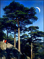 月照松林 月夜漫步石径松路上,隐约可见月光透过松影,点点洒落小径,如雪似霜,若银赛玉,微风拂过,松林轻吟,宛如悦耳音乐,令人幽情顿生。 三江映双月 每到中秋之夜,登上“双月楼”眺望,三江吻合处平静无波,流沙雪白,明月当空,江中双月辉映,一明一暗,实乃天下奇观。 象山夜月 中秋之夜,乘小舟驶入象鼻山的水月洞,便见“水底有明月,水上明月浮;水流月不去,月去水还流”的绝妙景观。 平湖秋月 中秋之夜,坐在深入湖面的平台上,但见湖平如镜,清风拂面,桂子飘香,正是“万顷湖平长似镜,四时日好最宜秋”。 太清水月 中秋之夜,月上东山,竹林里莹光浮动,回首太清宫,参差的楼阁飘渺;纵目眺望,天上月与海中月交相辉映。水生光,月更明,恍若置身仙境。 三月共赏 江苏苏州市网狮园的“月到风来亭”地势较高,三面环水,亭内正中悬一大镜,每到明月初上,可以看见水中、镜中、天上三个明亮的圆月,独成奇景。 二泉映月 二泉池畔古木参天,并有“二泉亭”、“猗澜堂”、“景徽堂”等古建筑物。每逢中秋之夜,观赏那汩汩清泉之中映出一轮皎皎明月,宛如身临广寒宫中。 二十四桥夜月 月明之夜,驻足桥头,抬头望月,俯身看水,会使人油然想起唐朝诗人杜牧“二十四桥明月夜,玉人何处教吹箫”的名句。耳边仿佛传来似有似无的玉人箫声。 石湖串月 每年中秋节后的农历八月十八,是观赏“石湖串月”的极佳时光。这时,月光皎洁,映入行春桥桥洞中的月景如串,映于湖面,煞是好看。 三潭映月 每当皓月凌空之时,在石塔内置燃烛,烛光透过小圆孔投进深潭,映出无数个小月亮,与倒映在湖面上的天上明月相映成趣。 黄山邀月 黄山的月如此纯净,黄山的夜如此静谥。入夜,盈盈明月轻轻爬上树梢,爬上了山,山雾如轻纱将其笼罩,更显得朦胧皎洁。 白云戏月 步上白云山,登上摩星岭,羊城全景尽收眼底,处处流光溢彩,满目灯火辉煌。抬头望,月上中天,四下里清辉遍地,天上月遥望人间景。 大理访月 大理赏月最好在洱海边,洱海月色波光粼粼,神秘在优美,与苍山雪景相映,人称"银苍玉洱"。 天涯明月 三亚市的鹿回头山顶公园是中秋赏月的好地方。时值良辰,登高望远,极目天涯,聆听"鹿回头"的动人故事,传说、美景如诗,入画。 桨声灯影水乡月 坐着绍兴独有的乌篷船漫游夜的水乡,轻棂的月光顺着矣乃的桨声流淌过来,和着水中倒映的临河白墙青瓦小楼里的灯影,如梦如幻,不由让人猜度月的心事,细读水的情节。 峨眉山月半抱秋 在半山赏月,峰如峨眉,月如金盘,别有一番静劾和奇俏。观方池秋月,波影融融,来水漱玉,去波寻珠,白水秋风,圣积晚钟,双桥清香,灵岩叠翠。 洞庭湖月两澄明 八百里洞庭烟波澹荡摇空碧,叶叶扁舟弄斜阳。日登层楼,见楚天千里清秋,水随天去秋无际;夜上层楼,见素月分辉,明河共影,表里俱澄澈。 天野苍茫月无言 明月下黄河洁丽、沉静,还带着点儿羞涩;而月下的草原更加空旷、静沓。天苍苍、野茫茫的情结凝聚在天边的草原月色里。
