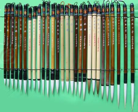 相传古代自有书契以来,我国便开始有笔。春秋、战国时对笔的叫法各地不一,有“笔”、“聿”、“不拂”等多种名称。直到秦实行“书同文,车同轨”,才将笔的各种名称统一称作“笔”(注:指用各种动物的毫为原料,人工精选,具有尖、齐、圆、健等特点,或粗或细,能轻能重,配上笔杆作用于书画)。