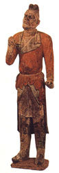 北朝的胡人俑,穿着翻领窄袖紧身的衣服。