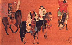 元代是由蒙古人统治,所以元代的服饰也比较特别。蒙古人多把额上的头发弄成一小绺,像个桃子,其他的就编成两条辫子,再绕成两个大环垂在耳朵后面,头上戴笠子帽。元代人的衣服主要是「质孙服」是较短的长袍,比较紧、比较窄,在腰部有很多衣褶,这种衣服很方便上马下马。 元代的贵族妇女,常戴着一顶高高长长,看起来很奇怪的帽子,这种帽子叫做「罟罟冠」。她们穿的袍子,宽大而且长,走起路来很不方便,常常要两个婢女在后面帮她们拉着袍角,一般的平民妇女,多是穿黑色的袍子。 男服服饰: 冕服: 天子衮冕服。 皇太子衮冕服。 公服:行礼时百官所穿的。 常服:元代上层主要服装。