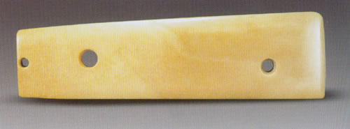 圭身平素无纹,穿有大小不一的三孔。抛光精细。
