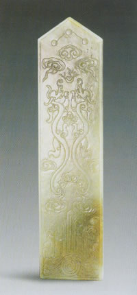 青玉双夔谷纹圭明26.3×6.5×0.8厘米估 价:RMB 26000