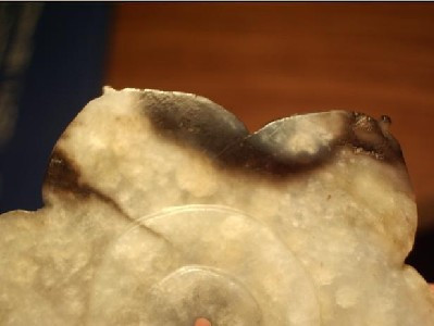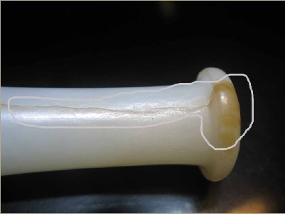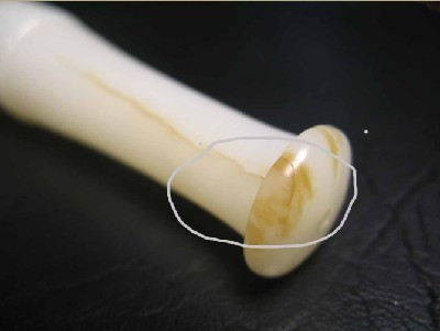 生坑的古玉,往往会在雕痕内、绺裂处、伤痕中生城一种黄白色或灰白色的浆状物。用开水能将其煮出。沁成这种程度需要2000年以上。