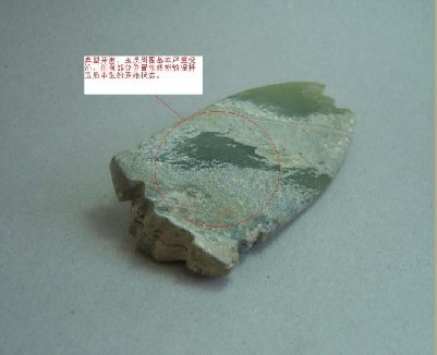 古玉受沁最慢的地方是表面最光洁和距离边缘远的地方,的以,在到了满沁或者快到满沁的状态时,往往会留有一小块尚未受到沁染而显露原来玉器底子的地方,这片地方就称为“开窗“,从开窗的地方能清楚 地看到玉器原来的本来面目。沁到这样的程度,需要1800年以上。