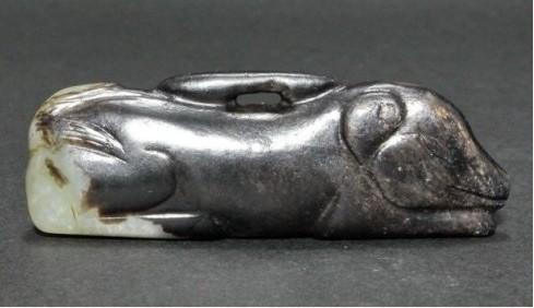水银沁的水银既来自敛葬的水银,也来自土壤中的水银。一般来讲土壤中的水银不能把玉器沁成半截黑或全黑,所以人们习惯将沁成半截黑或全黑的叫做黑漆古,将沁成线状的或小斑点的叫做水银沁。千年以内的水银沁一般不太黑,2000年以内的水银沁不亮,2000年以上的水银沁又黑又厚又亮。