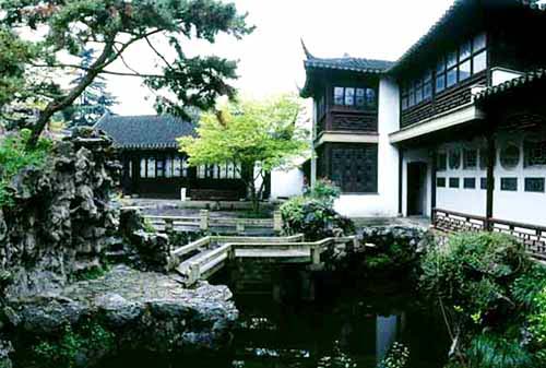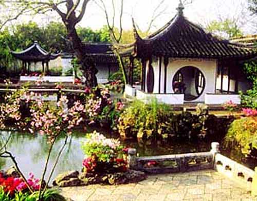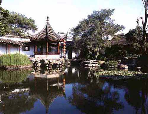 拙政园位于苏州市东北隅,始建于明正德四年间,为明代御史王献臣弃官归乡所建,取“拙者为政”之意得名。王献臣建园时,曾请著名画家文征明为其设计蓝图。王献臣死后,园主人更换频繁。咸丰十年(1860年)太平军进驻苏州,拙政园为忠王府。现存园貌多为清末时所形成。拙政园占地62亩,是目前苏州最大的古园林,分东中西三部分,中部为主景,以水为中心,水的面积约占3/5。所有建筑几乎全部临水,环池有远香堂、南轩、澄观楼、浮翠阁、宜两亭、见山楼、枇杷园、玲珑馆等楼阁轩榭,并以漏窗、回廊相互联系,园内山石嶙峋,古木参天,绿竹万竿,花卉绚丽,拙政园的特点是园林的分割和布局非常巧妙,充分采用了借景和对景等造园艺术,代表了明代园林建筑风格。
