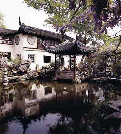 狮子林位于位于苏州市园林路,始建于元代,至今园中的许多胜景犹在。狮子林平面成长方形,面积约15亩,东南多山,西北多水,四周高墙峻宇,气象森严。狮子林以湖石著称,假山既多且精美,洞穴岩壑,奇巧盘旋、迂回反复,有“假山王国”之誉。园内有燕誉堂、立雪堂、指柏轩、见山楼、古雪松阁、暗香疏影楼、双仙香馆、贝生楼、问梅阁、荷花厅、扇子亭、真趣亭、飞瀑亭等建筑。狮子林的古建筑大都保留了元代风格,为元代园林代表作。园内四周长廊萦绕,花墙漏窗变化繁复,名家书法碑帖条石珍品70余方,至今饮誉世间。狮子林假山是中国园林大规模假山的仅存者,具有重要的历史价值和艺术价值。
