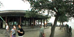 长廊东起邀月门,西至石丈亭(左上图,右上图)还连接了两府临水建筑,分别是对鸥舫和鱼藻轩(左下图 右下图)