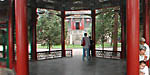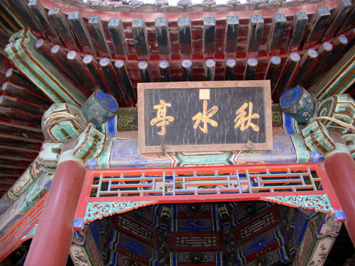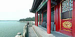 这条彩带般的长廊,把万寿山前分散的景点建筑连缀在了一起,形成了一条风雨无阻的观景线。邀月门是长廊东边的起点,从门外看,亭廊幽深。