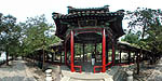 这四座重檐八角亭象征春夏秋冬四季,不仅使长廊的布局更趋严谨且富于变化,而且它们还是长廊起伏的地势和曲折走向变化的连接点,由于处理巧妙,所以人们在长廊内浏览,并不会明显感到地势和走向的变化。