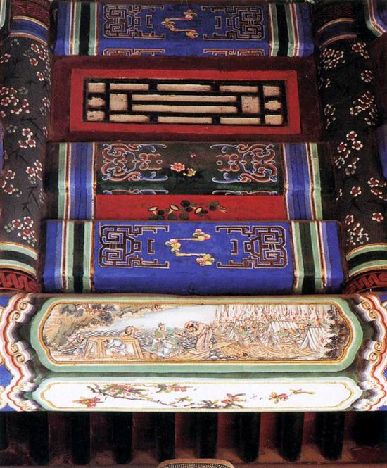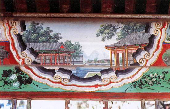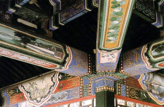 颐和园长廊,同时还是一座彩画的博物馆。长廊彩画就象一个个中国历史和文化的小窗口,从中人们可以了解到中国的许多传奇典故和文化内涵。