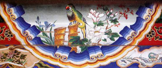 长廊最吸引人之处还在于它是一座名副其实的彩画长廊。长廊的上梁枋之间,布满了色彩鲜明的彩画。人们在长廊中漫游欣赏的时候,就仿佛是走入了一座建筑别致的精妙画廊。