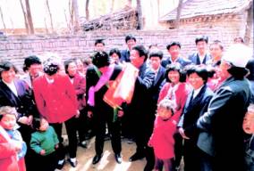 古时候举行婚礼时,新娘头上都会蒙着一块别致的大红绸缎,被称为红盖头,入洞房时由新郎揭开。