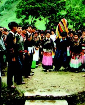 (三)云南弥勒“阿细”彝族自由恋爱该支系彝族有供未婚青年男女社交的“闲房”或“公房”,婚姻无父母包办,不用聘礼,当女儿将男子领回家后才知道女婿是谁。