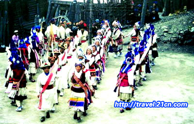 当然,有的男青年射弩没有把握,宁愿射不中鸡蛋,也不愿伤了心爱的人,只不过让人说不够勇敢强悍罢了,这并不影响他们结为伴侣。 射弩完毕,取闹的青年人便捧来竹筒酒(也称同心酒)让对对情人喝干,以定终身。人们边喝、边唱、边舞,沉浸在欢乐的气氛之中。