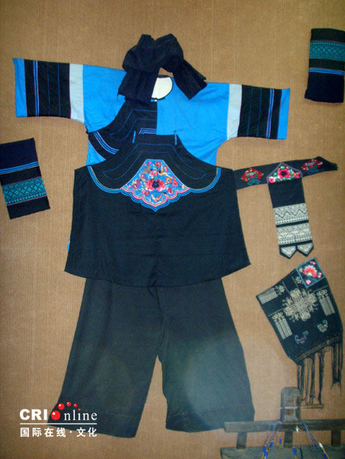 文山民族服饰异彩纷呈,壮乡的“壮锦”独树一帜,苗岭的“腊染”纯洁而古朴,彝寨的刺绣色彩斑斓,奇装异服展示了各族儿女的美好生活。 (摄于云南省文山博物馆)