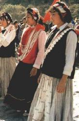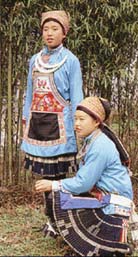 女子上着大襟、无领、无扣衣,下穿裙或裤。惯束腰带,包头帕。用黑、青(蓝)、深紫、白等四色。黑青色多用于春、秋、冬三季,白色多用于夏季,紫色多用于节日。
