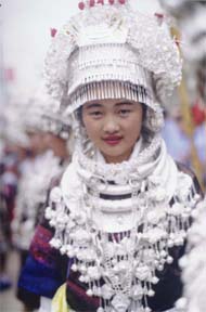 金属工艺品。流行于贵州、湖南、广西等侗族地区。妇女喜戴项圈、手镯、耳环、头花等。姑娘们参加婚礼和节日盛装时尤不可缺少。