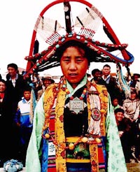 第三,不同的少数民族服饰,相当一部分是某种自然灵物崇拜或宗教信仰的“遗留”。不同的少数民族服饰中,往往有一些与众不同的衣物或饰物,表现出强烈的本民族特色,是该民族服饰中不可缺少的一部分。这些特殊的衣物饰物,一般与御寒、遮羞、美观、财富、权力等都没有直接的关系,但却在服饰中拥有一种崇高或神秘的意味。究其所包含的文化内容,大都与原始自然灵物崇拜或某种宗教信仰有关,相当一部分就直接是某种自然崇拜或宗教信仰的“遗留”。在服饰所反映的自然崇拜中,有图腾崇拜、祖先崇拜、鬼神崇拜、英雄崇拜等;有些服饰,在自然宗教仪式或巫术魔法中就是最好的祭物或法器。人为宗教如佛教、伊斯兰教等,对民族服饰的影响更是显而易见的。所以,服饰尤其是特点突出的少数民族服饰中便包含着某种深刻的自然宗教或人为宗教方面的内容。这种文化内容,有些反映在民族传说中,有些甚至记载于有关经典。