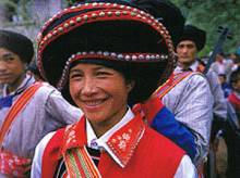 彝族是西南几省分布最广的一个民族,内部支系众多,其服饰十分丰富多彩,在这里我们所谈只限于彝族男子常穿的上衣中的一种--领褂。彝族领褂的基本特点是无袖、圆领,对开襟,一般用棉布或麻布缝制。但是,部分彝族的羊皮领褂和火草领褂却十分有特色。在贵州和云南北部的彝族地区,无论穷富,人们都喜欢穿羊皮领褂,而且四季不离身。彝族羊皮领褂由一张完整的羊皮做成,保留了羊的外形,无领无袖,夏天正穿,冬天反着,用四只脚皮当纽扣系住。而云南东川一带的彝族和鹤庆彝族支系白依人的青年,却格外垂青火草领褂。火草本是一种长在山的野生植物,其叶片和根部长满黄白色细毛,可以收下晒作火镰打火用的火绒,故名火草。每年夏末秋初,彝族青年上山采集火草,然后由姑娘们把采集来的火草捻成细绒,和细麻线捻在一起,用土法织成火草布,再缝制成领褂。这种用火草做成的领褂保暧、透气、穿着柔软舒适,经久耐磨,颜色黄白,在阳光下有耀眼的光泽。但要织成一件领褂,却要跑遍九坡十八岭,凝积着艰辛的劳动。采集得多的,也可以制成火草衣。姑娘往往将火草衣的赠送意中人,作为“定情衣”;而小伙子则以能穿上一件火草衣走亲访友而感到自豪和光荣