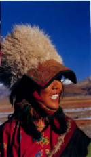第三,在这本图册中,我们还看到,藏民族把他们全部的财富和智慧都体现在服饰上了。这一点,是任何其他民族所无法比拟的。图册的大多数图片都是近年照的,尤其是青海、甘肃、四川、云南的藏族服饰都是些比较新的图片,可以看出,有一部分直接就是在一些民间传统节日中服装展示时拍摄的。因为在近十多年西藏和其他藏区,各种传统节日中都增加了一项新内容,那就是服饰展示, 它们与国内外使用模特的时装表演不同,藏区的表演者都是服装的真正拥有者,他们在展示服装的同时,也在炫耀财富。因为许多华丽藏装上的配饰和头饰上面缀满了金银,镶嵌着珊瑚、松石,珍珠、玛瑙,有的仅一粒宝石就价值数千元,一套服装价值几十万,甚至百万的不在少数。