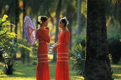 傣族妇女一般都长得身材苗条,面目清纯娇美,看上去婷婷玉立,仪态万方,因此素有“金孔雀”的美称。她们不仅长得美,而且还善于打扮,用独具特色的服饰把自己装扮得一个个如花似玉。