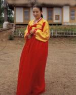 女装,主要有上衣、裙子、外衣(包括长袍、长衣等),还有为掩饰胸腰外露的和防寒用的“腰带”。朝鲜族女装的短上衣称为“则高利”、长裙称为“栖玛”。中老年妇女冬天在上衣外加穿棉或皮坎肩。下身一般穿缠裙,穿时把下身围一周后,把裙子的左下端提上来掖在腰带间。年轻妇女和少女的上衣较短,在袖口、襟边、及腋下镶有赤色或紫色绸缎花边,用花色绸缎做长飘带,配上适度而艳丽的长裙,穿起来潇洒美丽。脚上穿着独具特色的全胶鞋,是鞋头尖而翘起的船型鞋,多为白色或蓝色。这样的民族服装多出现在节日或喜庆的日子里。平时,朝鲜族妇女很爱穿短裙,戴头巾即将半米方形的四角巾对折叠起,从前额围到脑后系上。