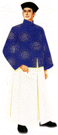 上面,是就两种不同类型的(或地域的)少数民族上衣所作的一些十分不完备的例举。如果从美的角度看,朝鲜族、傣族、满族的妇女上衣都该一提;而工艺的角度看,又当花腰彝的“花口绳塔”和高山族的贝珠衣。朝鲜族妇女的斜襟短上衣称为“则羔利”,色彩多色:白、粉红、天蓝、浅绿等,多为丝绸制成,形态短窄,无扣,有长布带在右肩下方打蝴蝶结。傣族少女上衣圆领窄袖,紧身露腰,彩多为白、嫩黄、水红等。满族妇女的旗袍虽为“长袍”类上衣,但并非一般的“宽袍大袖”,其造型与妇女的体态相吻合,尤其能勾勒出凸起的胸乳、纤细的腰身和丰满的臀部,线条优美,因而已普及至满族以外的妇女。原来的旗袍下摆不开叉,衣袖八寸至一尺,衣边绣有彩纹。经过不断改进,现在的旗袍为直领右开大襟,紧腰身,长至膝下,两侧开叉,并有长短袖之分。可见,朝鲜族、傣族女上衣和满族旗袍显然都以形制胜。花腰是居住在云南石屏的龙武、哨冲一带的彝族支系,“花口绳塔”是花腰姑娘最漂亮的服装。“花口绳塔”的基本材料是纸花、纸蝴蝶、多种图案、多种颜色的布、丝线、银器等。姑娘们用灵巧的手,一针针一线线地绣成裁片,然后又一块块一条条地拼起来,成为一件完整的上衣,上有飞舞的蝴蝶和鲜艳的花朵,再配上银器作扣子和装饰。高山族的贝珠衣是用贝壳雕琢成圆形珠粒,中间穿孔,用麻线串起来按横线排列在衣服上而制成的。一件贝珠上衣大约需要五六万颗贝珠,工艺复杂,费时费力,因此十分宝贵。从贝衣的造型看,泰雅人的贝衣多白色,横向排列整齐,给人一种纯洁、整一而又华美之感。而台湾人的贝衣则以澄、黄、绿为常见的色彩,近年来又有向黑、红、白色发展的倾向。不用说,花腰彝的“花口绳塔”和高山族的贝珠衣制作工艺要求十分严格,花费的材料和劳力不少,其名贵也就可想而知。