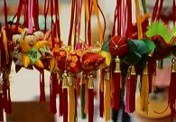 长命缕 旧时端午节厌胜佩饰。亦称续命缕、续命丝、延年缕、长寿线,别称’百索、’辟兵绍、五彩缕等,名称不一,形制、功用大体相同。其俗在端午节以五色丝结而成索,或悬于门首,或戴小儿项颈,或系小儿手臂,或挂于床帐、摇篮等处,俗谓可避灾除病、保佑安康、益寿延年。此类节物的形制大体有五:简单的以五色丝线合股成绳,系于臂膀;在五彩绳上缀饰金锡饰物,挂于项颈;五彩绳折成方胜,饰于胸前;五彩绳结为人像戴之;以五彩丝线绣绘日月星辰乌兽等物,敬献尊长。此俗始于汉代。东汉应劭《风俗通·佚文》:“午日,以五彩丝系臂,避鬼及兵,令人不病瘟,一名长命缕,一名辟兵绍”。以后相沿成习,直至近、现代。清富察敦祟《燕京岁时记》记当时风俗:“每至端阳,闺阁中之巧者,用续罗制成小虎及粽子、壶卢、樱桃、桑葚之类,以彩线穿之,悬于钗头,或系于小儿之背。”其中唐宋时,更有宫廷赐大臣此种节物之事。史载唐代宗兴元元年端节,宫廷曾赐百索一轴。又《宋史·礼志十五》:“前一日,以金缕延寿带、綵丝续命缕分赐百官。节日戴以入。”