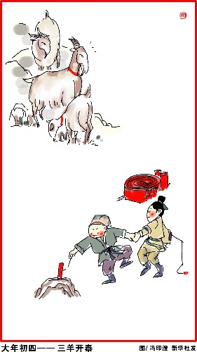 大年初四,在老皇历中占羊,故常说的“三羊(阳)开泰”乃是吉祥的象征,也是恭迎灶神回民间的日子。