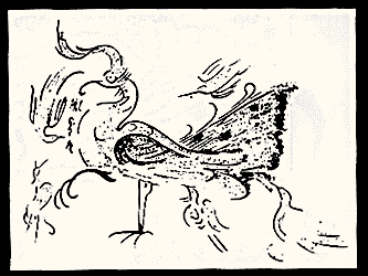 它们相对朝着一个光圈形,仰首扬尾,神采奕奕。画中双凤欣喜悦的向往和追求的神情,可说是我国原始先民们对美好愿望的表现和写照。「凤凰鸣矣,于彼高岗;梧桐生矣,于彼朝阳。」古代诗经所表达的情意与之相呼应,恐怕不是偶然的。在民间流传至今日的「丹凤朝阳」图案,正与此诗寓意相通。如前所述,商周时期,凤凰被看作是一种神鸟。故在奴隶主使用的玉器和青铜器上,凤纹的刻划,突出地表现统治者的「天命」观念。这时的凤纹几乎都作花冠状,丰满的翅膀和长长的尾羽,宽大有力的爪,显示出一派勇武健硕的情态。如殷墟出土的玉凤(插图一四、一五、一六),青铜器父丁卣腹部和父乙觥腹部的凤纹(插图一七、一八、一九)其式样都具有代表性。当时甲骨文和金文中的凤字,